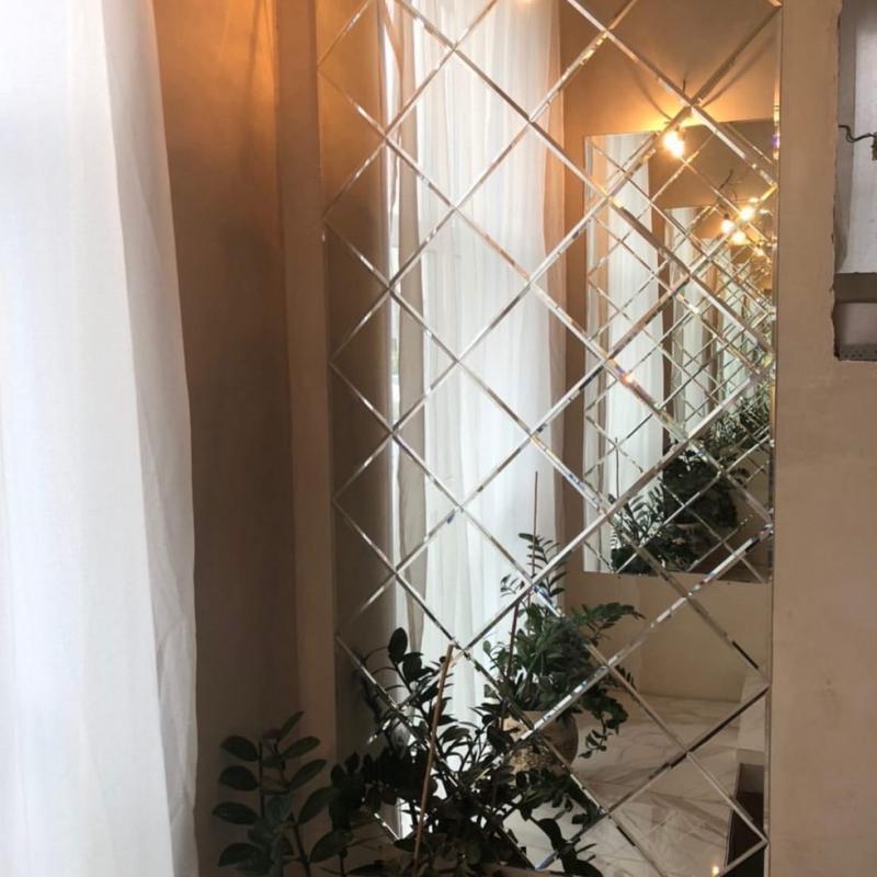 Использована зеркальная квадратная и треугольная плитка с фацетом.
