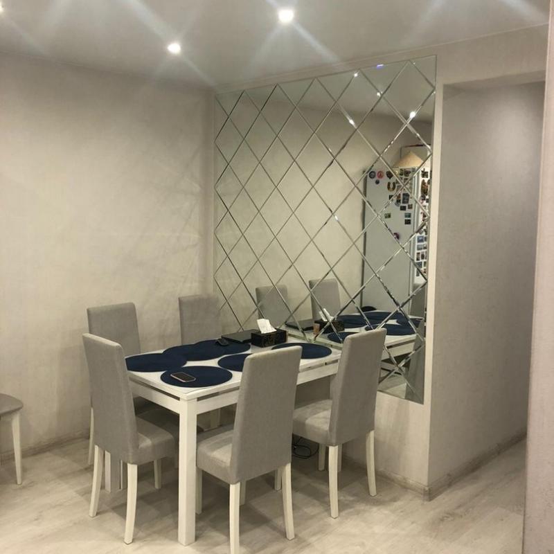 Мы уже много раз писали про зеркальное панно в обеденной зоне. И все-таки каждое решение выглядит более оригинальным, чем предыдущее.